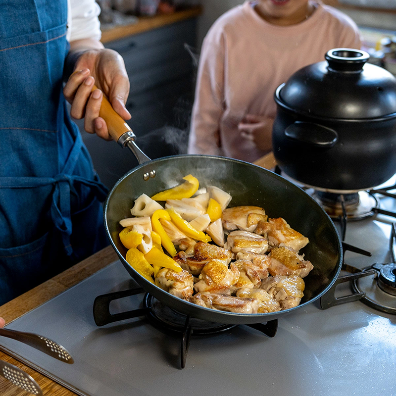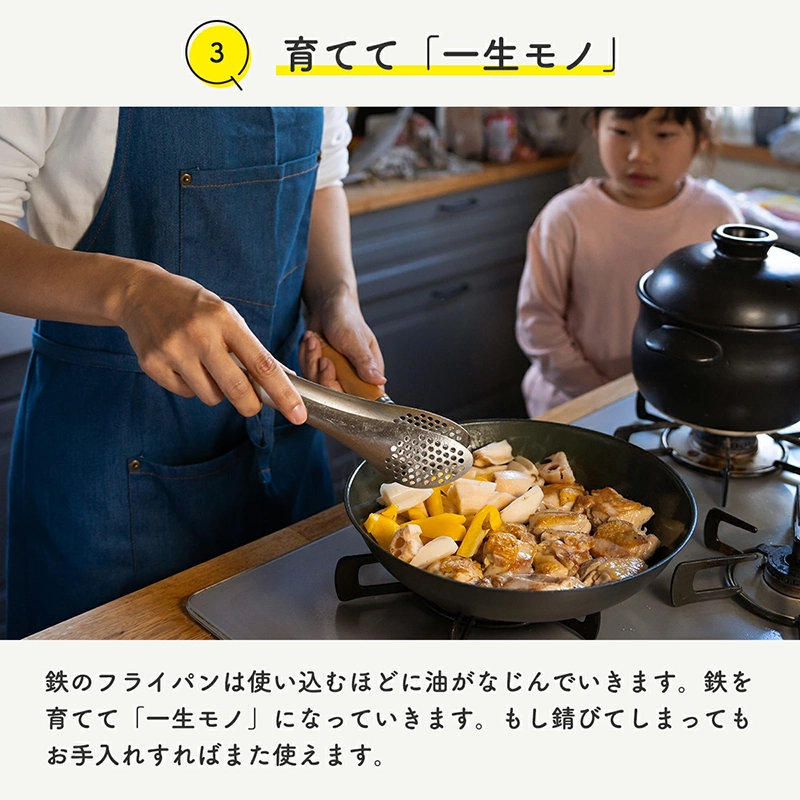 | 材質 | 本体:鉄(底の厚さ 1.2mm) ハンドル:木柄 |